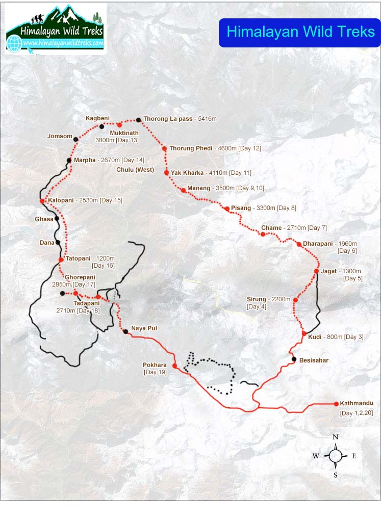 Itinerary for Annapurna Circuit/ Thorongla pass Trekking