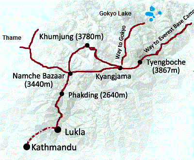 Everest Short Comfort Trek -12 Days is a deluxe package that includes sightseeing of cultural and historical and world heritage sites in Kathmandu (1400m ) before setting forth to Lukla by flight(35-40 min.) and the trail leads us via Namche(3440m), Khumjung(3810m )Tengboche (3870m) , Kyanjungma(3570m) and Monjo(2840m) then tracking back to Lukla(2860m). Himalayan Wild Treks offers the cost effective price, flexible itinerary and latest updated map for the Everest Short Comfort Trek– 12 Days.